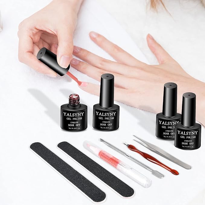 - High Quality & Long Lasting: gel polish is long lifespan, anti-chip. Unrivaled shiny and vivid, non-yellowing and superb adhesion. most fashionable style colors, full but natural looks, lightweight ,smooth, shimmerly. With a proper application, this gel polish kit can keep for about 3 weeks+. Need to be cured under nail dryer light.