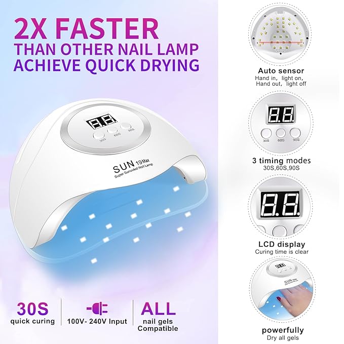 - Fast Nail Lamp: The nail lamp has high power, and 36 pcs led light beads can quickly dry gel polish in all directions. The LED nail lamp has an intelligent sensing mode. When the hand goes in, the light is on, and when the hand is stretched out, the light is off. At the same time, the nail lamp also has 3 timers, and you can freely choose the number of seconds to dry.