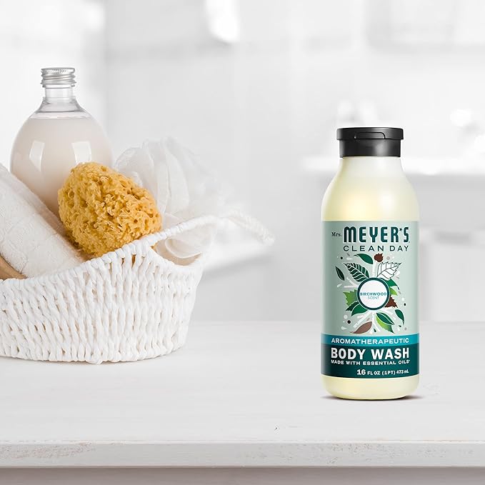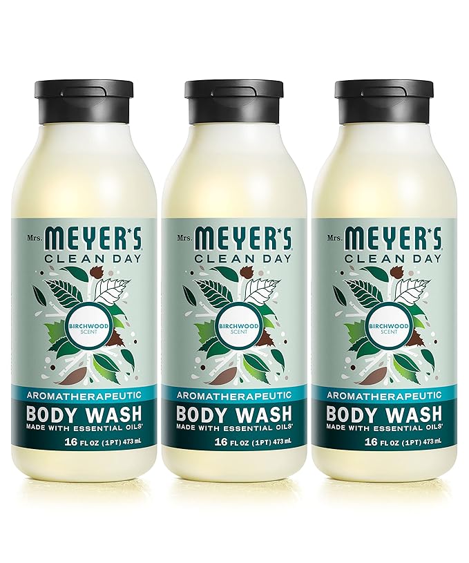 MRS. MEYER'S CLEAN DAY Moisturizing Body Wash for Women and Men, Biodegradable Shower Gel Formula Made with Essential Oils, Birchwood, 16 oz - Pack of 3