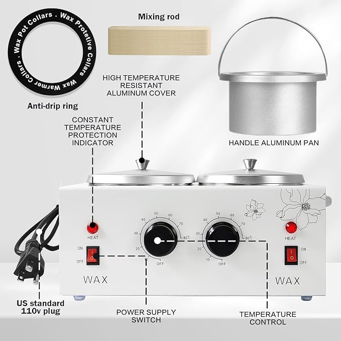 - 【Scope of Application】The professional wax warmer can be used for hair removal on hands, feet, face, and the whole body. Using a wax heater machine to remove hair makes the entire process safe, simple, and convenient, perfect for home use.