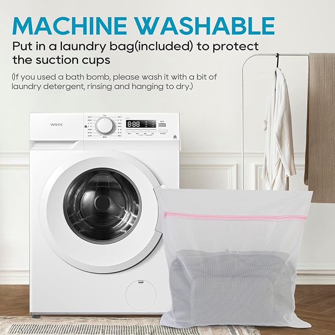 - Easy to Use and Clean: Clean by hand or machine wash bath pillow with the included mesh bag to protect suction cups. A built-in hanging hook allows quick drying and storage. Note: Wash after each use, hang in sunlight and ventilation to prevent yellowing
