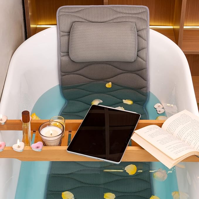 - Comfort and Support: This full-body bathtub pillow is soft yet supportive, with one-piece design that relieves pressure on your back, shoulders, and tailbone. The extra-thick headrest supports your neck and head, making it perfect for reading or relaxing