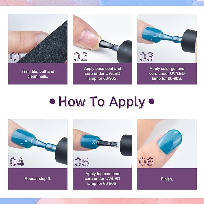 - Tip: Because everyone uses a different monitor and light source, the gel nail polish you see may have some color difference, which is within the allowable range. You can find a detailed description of the product in the packaging. This package contains a user manual that you can read carefully. If you have any other questions about this product, you can contact us and we will promptly address your issue within 24 hours!