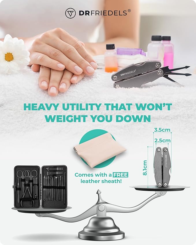 - Complete Care Without the Clutter: Our compact and lightweight manicure kit for women is built like a swiss army multitool of nail care essentials so you can switch instruments without rummaging through your usual nail manicure kit.