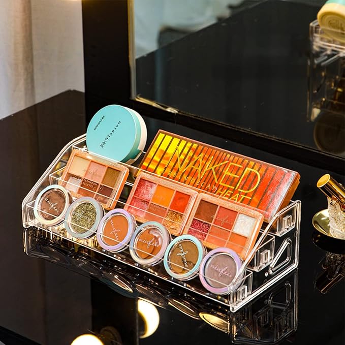 - đ ă3 Layers & Large Capacity Designă The nail polish organizer, 3 layers of super large storage space, stepped-wedge design, fits 36 bottles of nail polish. The acrylic nail polish organizer can keep your countertop and desktop areas neat professional and organized. The shelves have a railing on the edge of the shelf so stuff doesn't fall off or tip over.