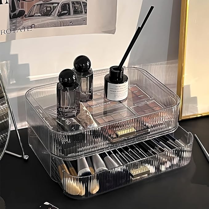 Stackable Clear Plastic Organizer Drawer | Organize Eyeshadow Palettes, Cosmetics, and Beauty Supplies on a Vanity