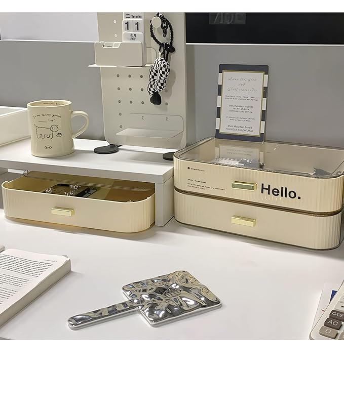 - Large-Capacity Storage: This makeup organizer includes a wide drawer .The desk organizers have ample space for multiple lotion bottles, brushes, facial mask, cotton pad, makeup brush, lipstick, lipstick, liquid foundation, mascara, eyeliner, eye shadow palette and other daily cosmetics. Interlocking and stackable design fits to other drawers so that you can DIY your own makeup organizer.