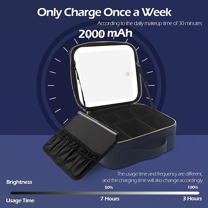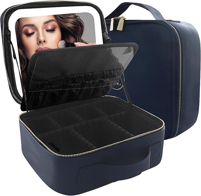 MOMIRA Travel Makeup Bag Cosmetic Bag Makeup Organizer Bag with Lighted Mirror, Adjustable Brightness in 3 Color Scenarios, Waterproof Makeup Train Case, Gift for Women - Royal Blue