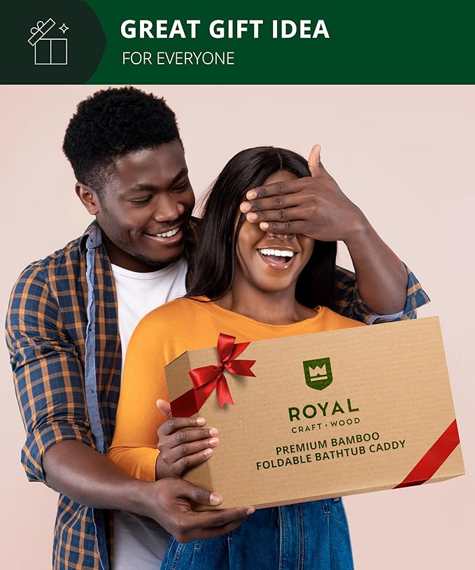 - โ ๐ฌ๐ฟ๐ป๐ฌ๐ต๐ซ๐จ๐ฉ๐ณ๐ฌ: This Royal bamboo bathtub tray has been carefully redesigned to collapse neatly in half for a new bathtub caddy foldable configuration. Still just as accommodating as our classic bath caddy tray for tub use, it too features an expansive, slip-resistant surface. Stretching from 29 ยฝโ - 43โ to meet your tubโs dimensions. With silicone gripped feet underneath, and all the necessary amenities to accommodate and accentuate your bathroom accessories