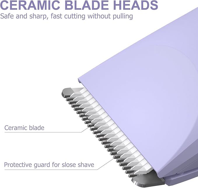 - Special Care/ Skin Friendly - Soft ceramic blades featuring advanced technology, performing well when it comes to groin hair, the armpit area, legs, with no any pulling or cutting. It comes with 2 adjustable trimming guards for different hair lengths