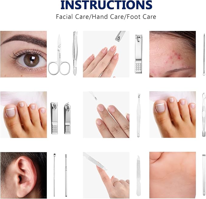 - What's Included: you will receive 12 sets of professional manicure kits, including toenail tools, multi functional hand care, facial care and foot care tools, can satisfy your daily use and replacement demands