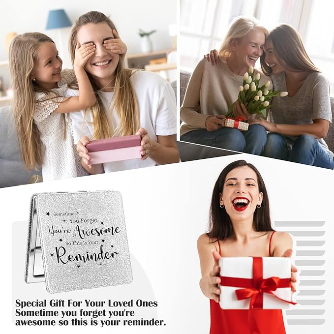 - Encouraging Mirror Gift: there are 12 pieces of travel mirrors in glitter silver, enough for you to share with employees, volunteer, colleagues, teachers, students, nurse, family members, sisters, female friends, classmates and others you want to thank, for Mother's Day appreciation day and so on