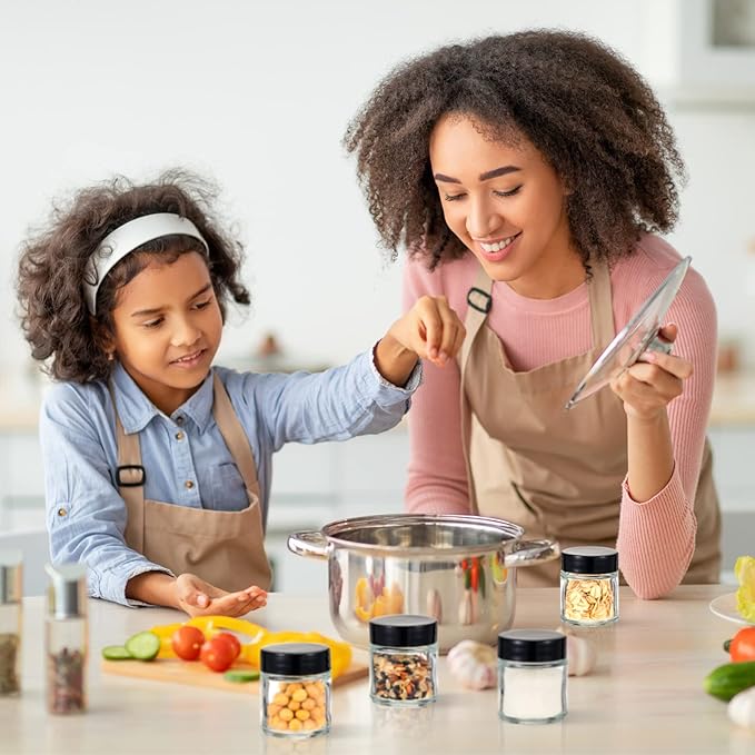Aoriher 60 Pieces Glass Jars with Lids Clear Small Mason Empty Round Spice Wide Mouth Canning Storage Refillable Cosmetic Containers for Lotions Cream Powders (1 oz) clear and black HS-Aoriher-23870