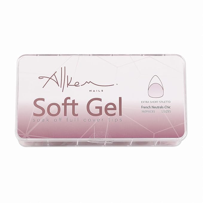 Allkem Soft Gel Nail Tips - Extra Short French Stiletto Nail Extensions Kit - 12 Sizes Long Full Cover Nails - Neutrals - Chic (360 Pieces)
