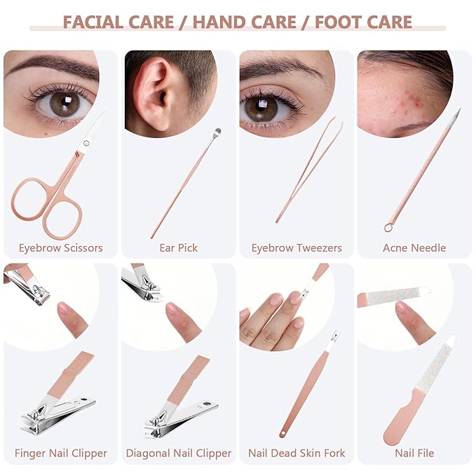 - Manicure and Pedicure Set: the package contains 24 sets of nail kits, including manicure and pedicure tools, such as nail clippers, tweezers and other tools for hand care, facial care, and foot care, sufficient for your daily use