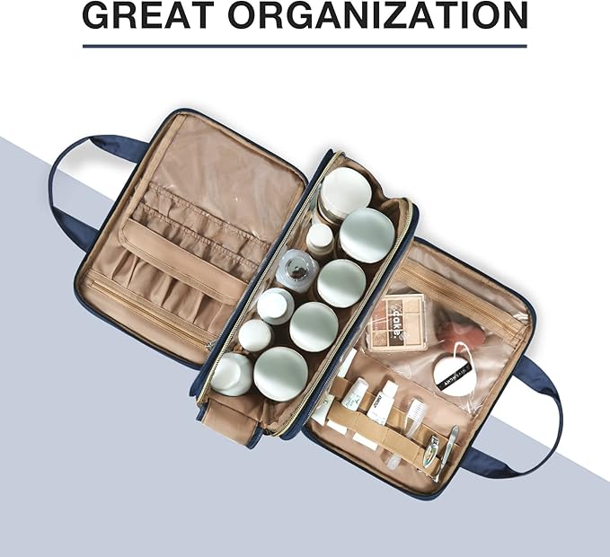 - Large Capacity-11 x 4.3 x 7.8 inches. Multi-functional toiletry bag can hold your full-sized toiletries, cosmetics, lotions, shampoo, skin-care products and other travel accessories you need well-organized.