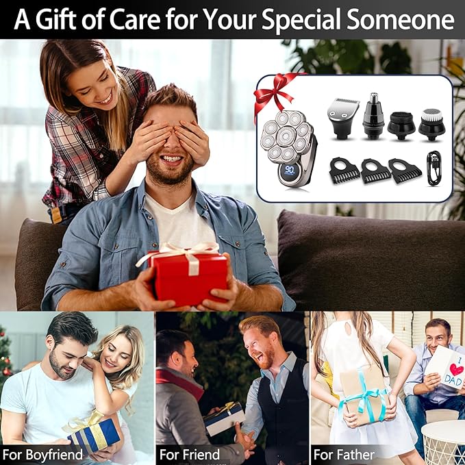 - ✅【6-in-1 Grooming Kit】Electric shavers for men includes 6 detachable Accessories, Head/Beard Shaver, Nose/Ear Hair Trimmer, Hair Trimmer(3/5/7mm), Facial Massage Brush, Facial Cleaning Brush, Body Trimmer. Professional 6 in 1 Multifunctional electric shavers, Different types of head razor shaver accessories meet all your personal facial shaving needs for beard and hair. Great for husband, partner, father, friends and brothers