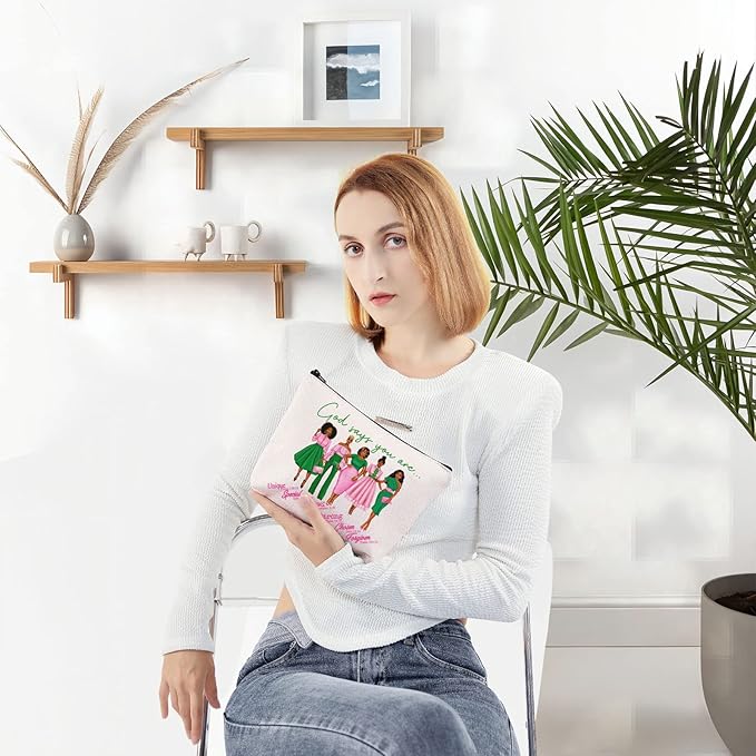 WZMPA Sorority Sisters Cosmetic Makeup Bag Pink and Green Gift God Says You Are Sorority Makeup Zipper Pouch Bag Greek Sorority Paraphernalia (God Says AK)