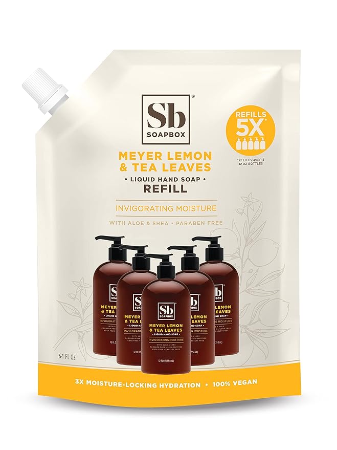 Soapbox Liquid Hand Soap Refill, Meyer Lemon & Tea Leaves, Gentle & Moisturizing Hand Wash for Kitchen and Bathroom, Vegan & Cruelty Free, 64oz Half Gallon Refill (Pack of 1)