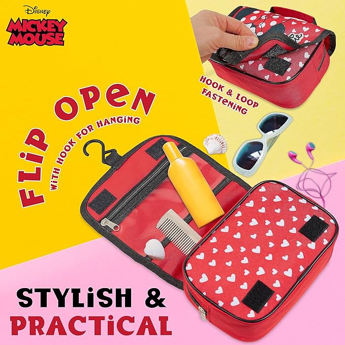 Disney Stitch Hanging Toiletry Bags for Women Teenagers Girls Minnie Mouse Cosmetic Bag Travel Accessories Stitch Gifts (Red Minnie)