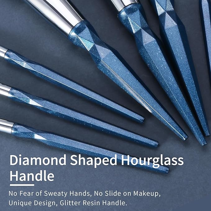 - ♥【Glitter Resin Handle】▬ Unique Design, Diamond Shaped Hourglass Makeup Brush, No Fear of Sweaty Hands, No Slide on Makeup, Fashion and Durable, Glittery Makeup Brush Color Set for Cheeks, Nose, Eye, Eyebrow, EyeLiner.