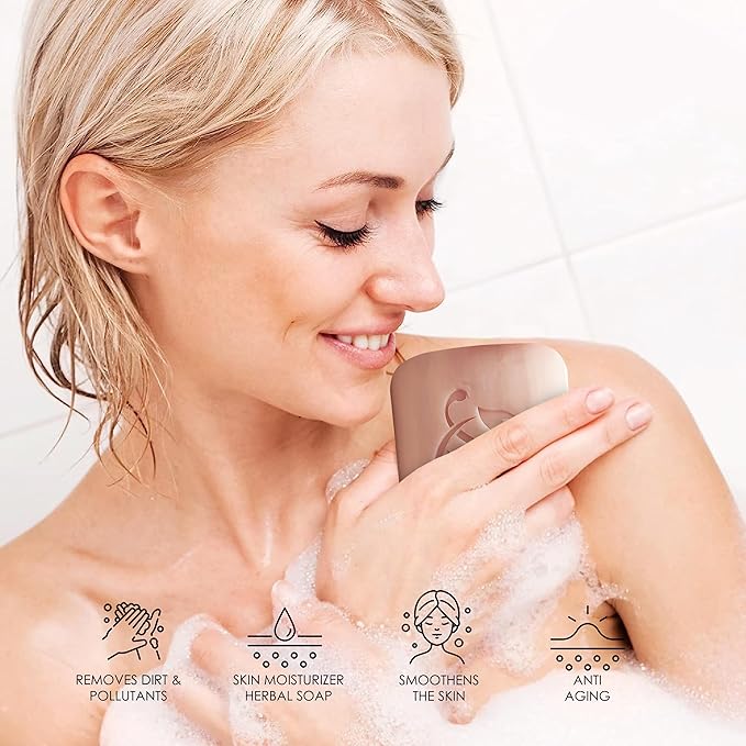 - Indulge in an amazing bathing experience: Begin by wetting your skin with warm water and gently massage our herbal soap bar onto your skin in circular motions until a rich lather forms. Enjoy the luxurious and natural scent of these ingredients.