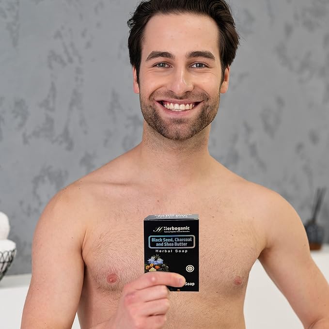 - Soothes and rejuvenates skin: Herboganic’s black seed, charcoal and shea butter herbal soap is infused with this natural blend which gently cleanses and soothes your skin, leaving it feeling revitalized and refreshed while harnessing the power of charcoal for purification.