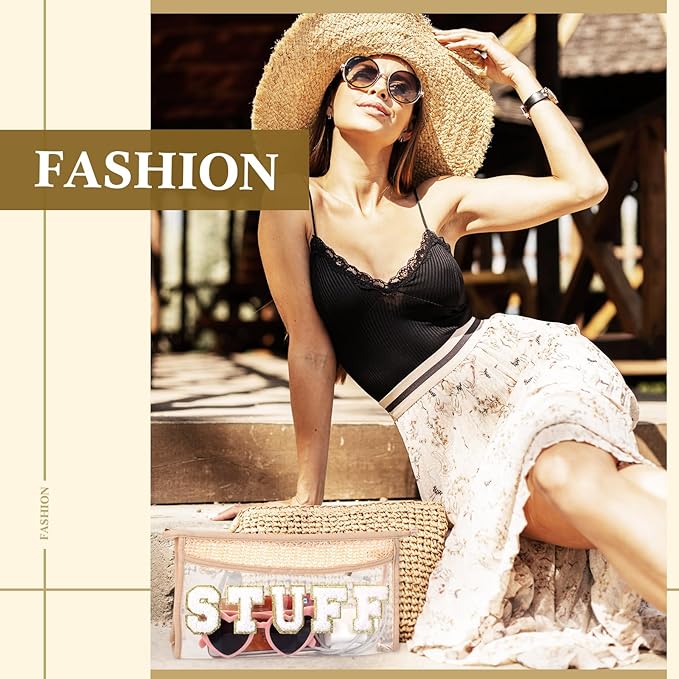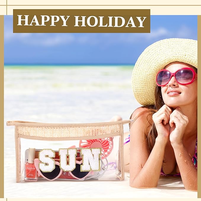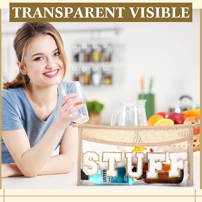 - Chenille Letter Design: the transparent makeup bag is designed with letter patch, firmly sewn on the bag; You don't have to worry about them falling off; These colorful letters with golden flashing borders make your travel cosmetic bag look more charming and vivid