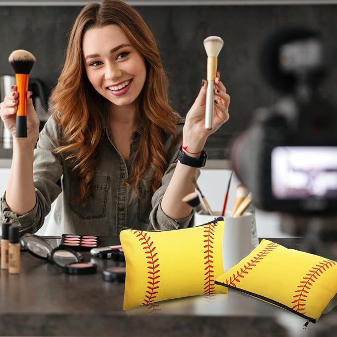 Eccliy 20 Pcs Softball Makeup Bags Bulk Sport Team Gifts Softball Cosmetic Bag Accessories for Women Toiletry Zipper Pouch Travel Canvas Gifts Stuff for Party Team Players Lover