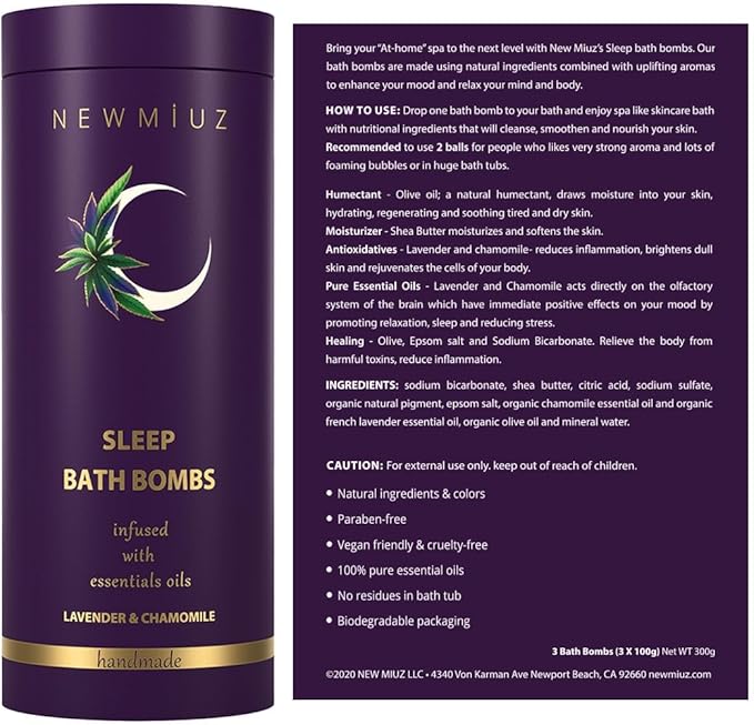- LAVENDER AND CHAMOMILE INFUSION: Experience the tranquility of our Deep Sleep Bath Bombs, expertly infused with the soothing essences of lavender and chamomile. This bath bombs lavender, tailored for women, elevates your bathing ritual, setting the stage for a night of peaceful slumber.