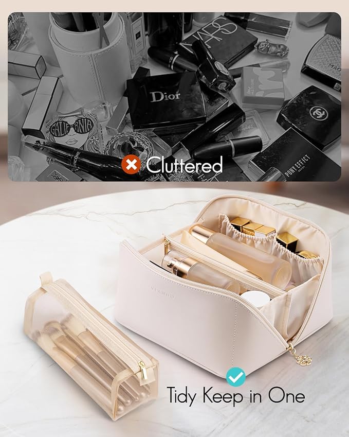 - Gift Ideals:This portable white makeup organizer bag can be used as a cosmetic travel bag, a toiletry bag.A ideal gift for birthdays, anniversaries, graduation,valentines day for wife,daughter,friends,teacher