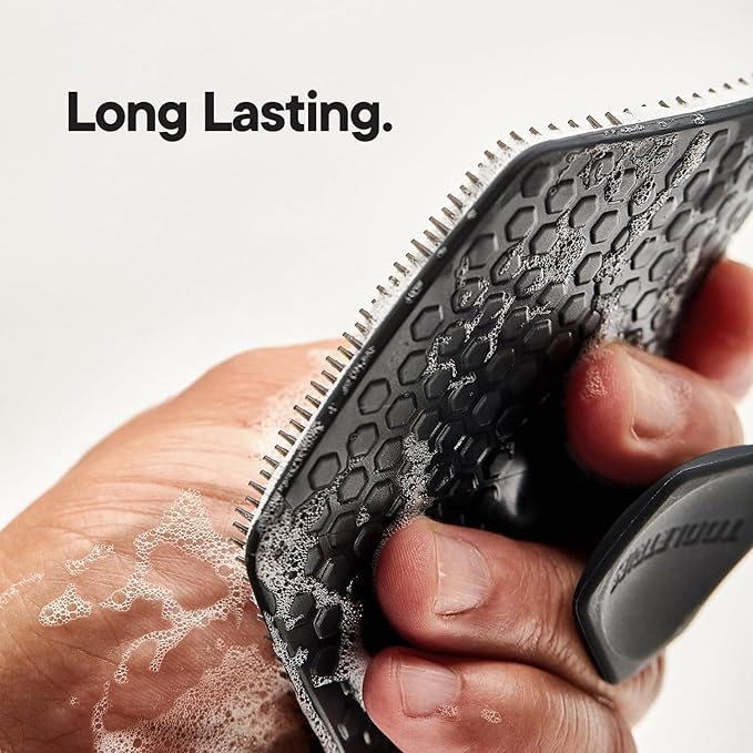 - BUILT BETTER - We're all for manly showers, but that doesn't mean scrubbers that fall apart after one wash; pick the durable men's body scrubber made from 100% silicone with deep-cleaning bristles and an ergonomic handle that'll keep you clean for months