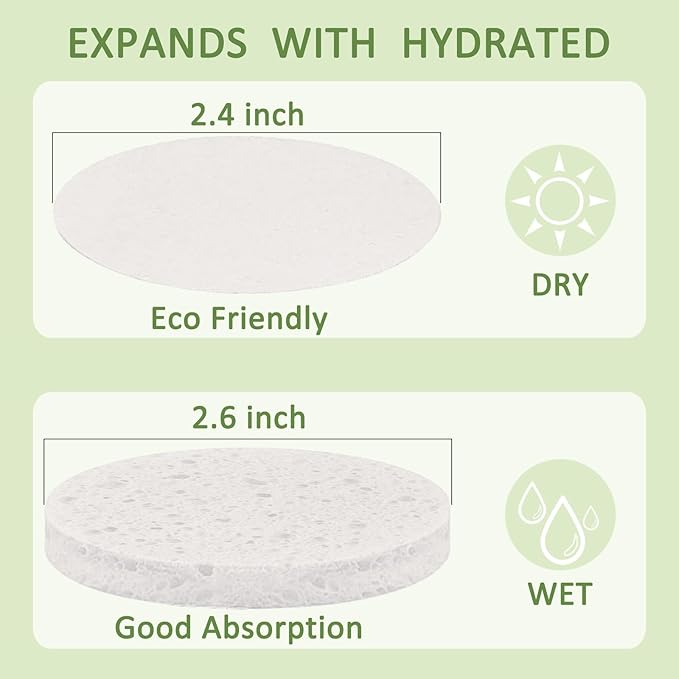 - PACKAGE AND SIZE: Comes with 300 count compressed facial sponges, 50 count per pack,6pack in the package, the size is 2.6*0.3 inches when expanded with water. Enough quantity for you to use for years.
