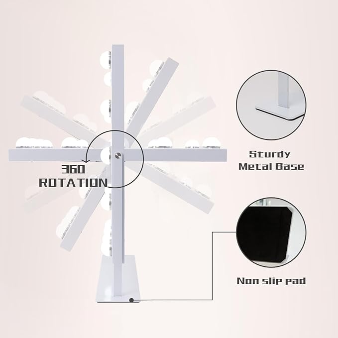 - 【360° Swivel & Sturdy Frame】 Tilts back and forth to meet different angle viewing needs. Made with a sturdy metal frame, base, and a non slip pad on the bottom, vanity mirror is not easy to fall down and get the mirror broken