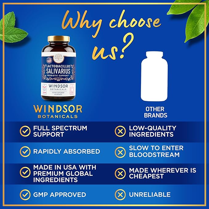 - LACTOBACILLUS SALIVARIUS dental probiotics for teeth and gums formulated with 24 bn CFU Lactobacillus Salivarius, a probiotic strain known for its oral health benefits. Promotes teeth and gums health.