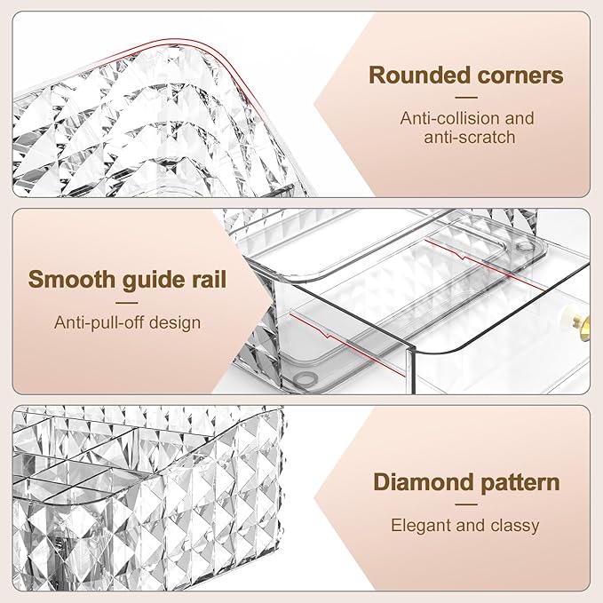 - Elegant Exterior : The elegant diamond pattern and sophisticated handle design add a touch of elegance to your vanity, making it the perfect addition to any decor style.