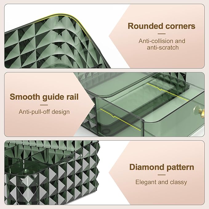 - Elegant Exterior : The elegant diamond pattern and sophisticated handle design add a touch of elegance to your vanity, making it the perfect addition to any decor style.