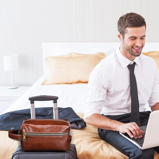 - Trustworthy Material: crafted with quality PU leather and sturdy metal zippers, our toiletry bags for men exude elegance and durability; The dependable material ensures longevity, while the smooth zipper provides easy access to your belongings