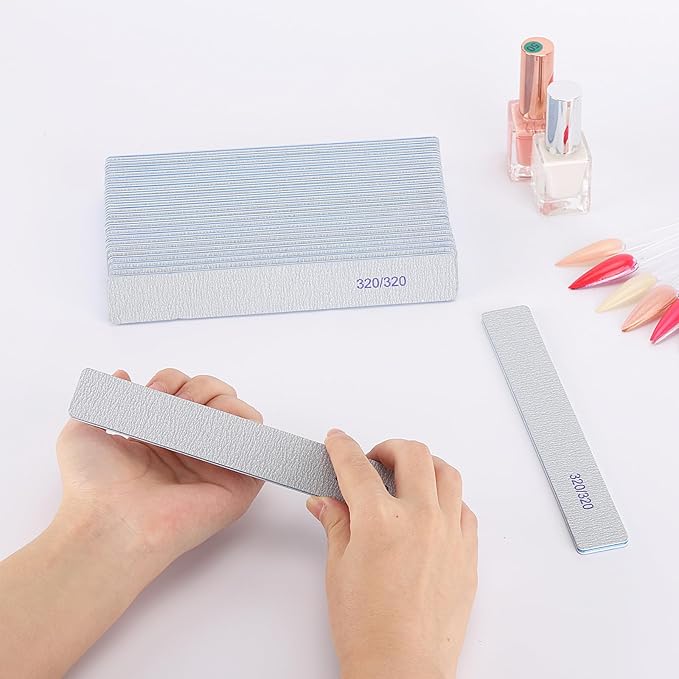 - 25 count of 320/320 grit rectangle nail files. Ideal for filing natural nails