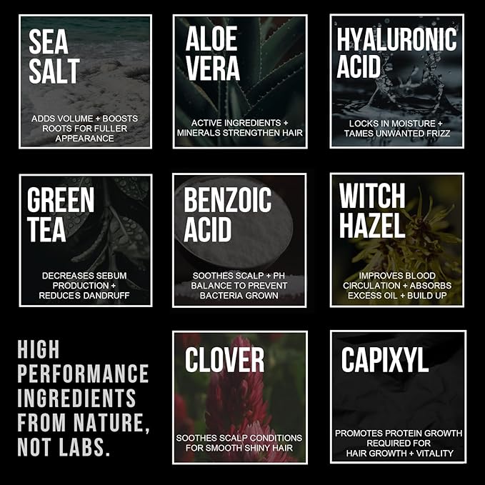 - 🏴VERSATILE TEXTURIZER: Designed for all hair types and ages - long, short, thinning, straight, curly or wavy. Elevate your personal style by giving your hair a thicker appearance. Whether your look is laid-back or professional, our Seasalt spray has got you covered day and night.