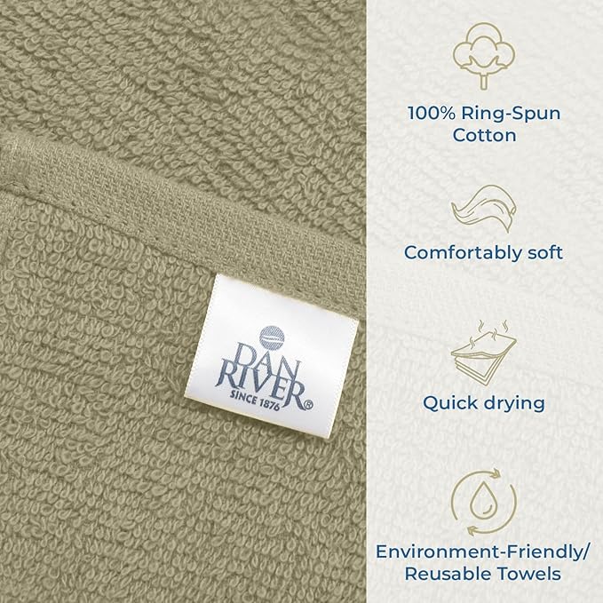 DAN RIVER 100% Cotton Washcloths 24 Pack Premium Quality Face and Body Cloth, Quick Dry Essential Towels for Bathroom, Hand, Kitchen & Cleaning, Baby Rugs | 12X12 in | 400 GSM | Beige