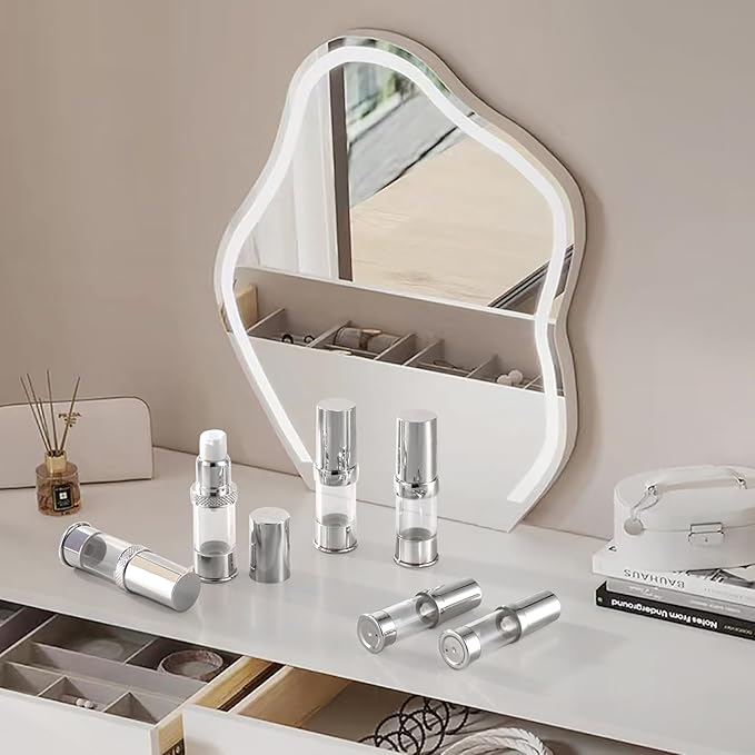 silvery travel size bottle with bag set, airless real pump bottle, reusable vacuum bottle, lotion, hand sanitizer, essence, etc (12 packs) 5ml/10ml/20g ZKP-YS-5-10-15