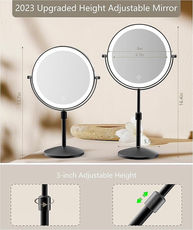 - ใ๐๐ฉ๐ ๐ซ๐๐๐๐ ๐๐๐ข๐ ๐ก๐ญ ๐๐๐ฃ๐ฎ๐ฌ๐ญ๐๐๐ฅ๐ & ๐๐๐ยฐ ๐๐จ๐ญ๐๐ญ๐ข๐จ๐ง ๐๐ข๐ ๐ก๐ญ ๐๐ฉ ๐๐ข๐ซ๐ซ๐จ๐ซใThis upgraded cosmetic mirror has height-adjustable and 360ยฐ swivel function, which is ergonomically designed. You can adjust to any desired angle or position without bending over. 3 Inches height adjustable from 13 to 16 inches. Ideal for family use.