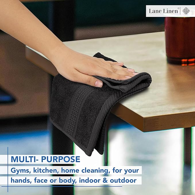 LANE LINEN 100% Cotton Washcloths 12 Pack - Spa & Salon Quality Face Cloths - Ring Spun, Soft & Absorbent Wash Cloths for Body, Beauty, Home, Gym - Fingertip Towels Set- 13"x13", Black Towels Set