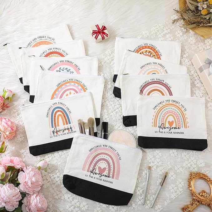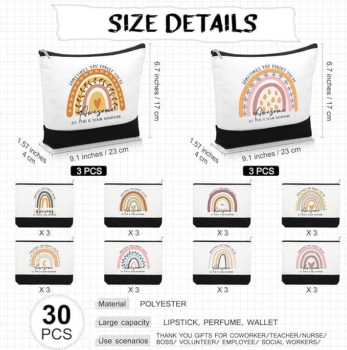 Sieral 30 Pcs Rainbow Canvas Makeup Bags Bulk Employee Appreciation Gifts Graduation Inspirational Cosmetic Bags Thank You Gifts for Teacher Secretary Coworker Volunteer Nurse(Cute)