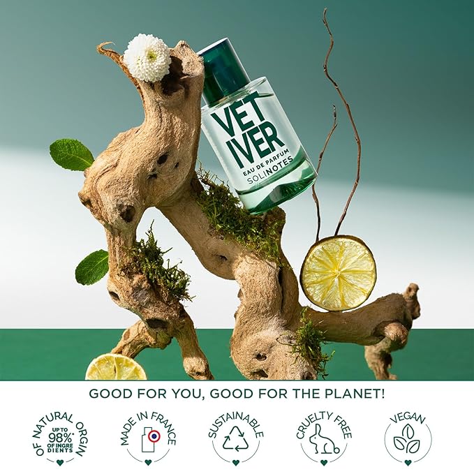 - 🍈🌰 Revel in the unexpected fusion of bergamot and mint that vigorously stirs your senses. The complementary duo of cocoa and nutmeg envelops you in a comforting embrace, grounded by the rich undertones of intense woody notes. Solinotes' Vetiver Eau de Parfum is a tranquil yet invigorating potion, fitting seamlessly into both men's and women's fragrance assortments.