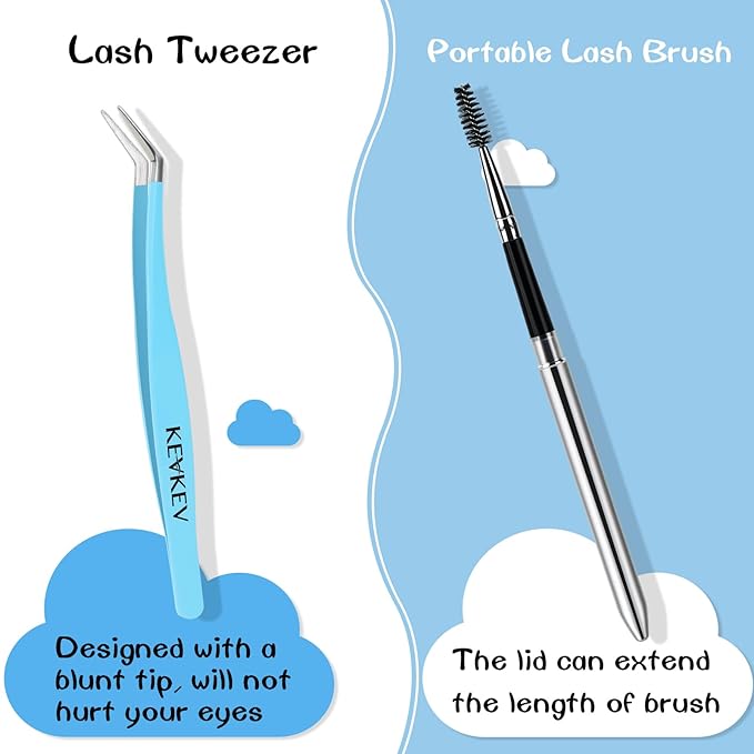 - Tools in the Kit: Transform your lashes with KEVKEV lash bond and seal, a compact and portable 2-in-1 package where bond and seal are combined into a 5ml double-head. Small and portable eyelash tweezers, lightweight, strong and durable.