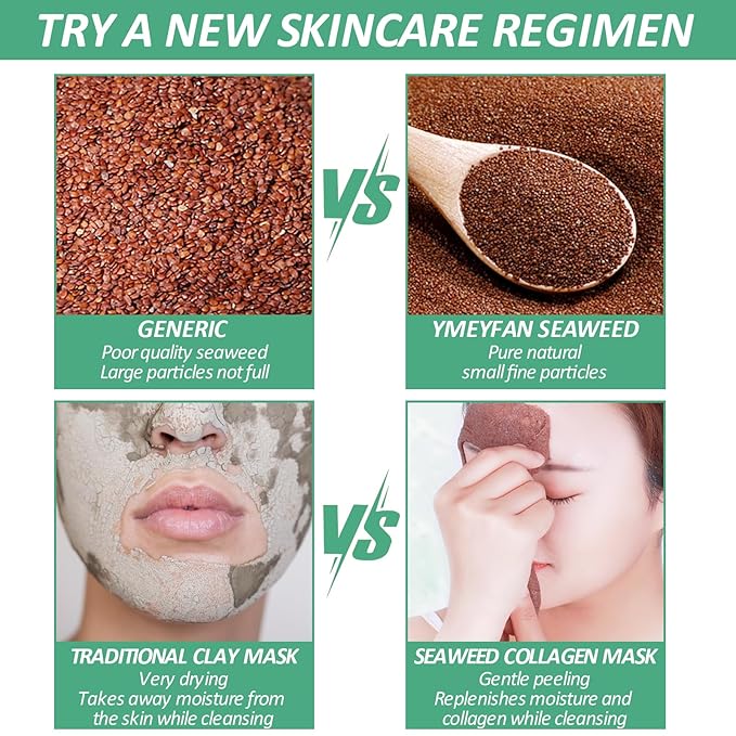 - VEGAN SKIN CARE: Less than 0.5mm particles are rich in seaweed extract and collagen, the nutrients in the seaweed jelly collagen mask are easily absorbed by the skin, and can deeply hydrate and cleanse the skin.