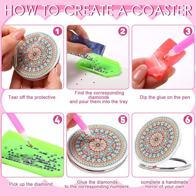 - Ideal Gifts: these diamond mirrors with diamond painting covers are crafted with delicate design, and they offer a combination of functionality and artistry; The mirrors feature diamond painting covers, making each piece a work of art, making them an ideal present for many occasions birthdays, anniversaries, housewarming parties