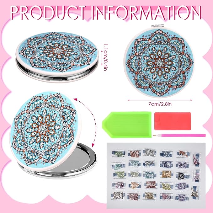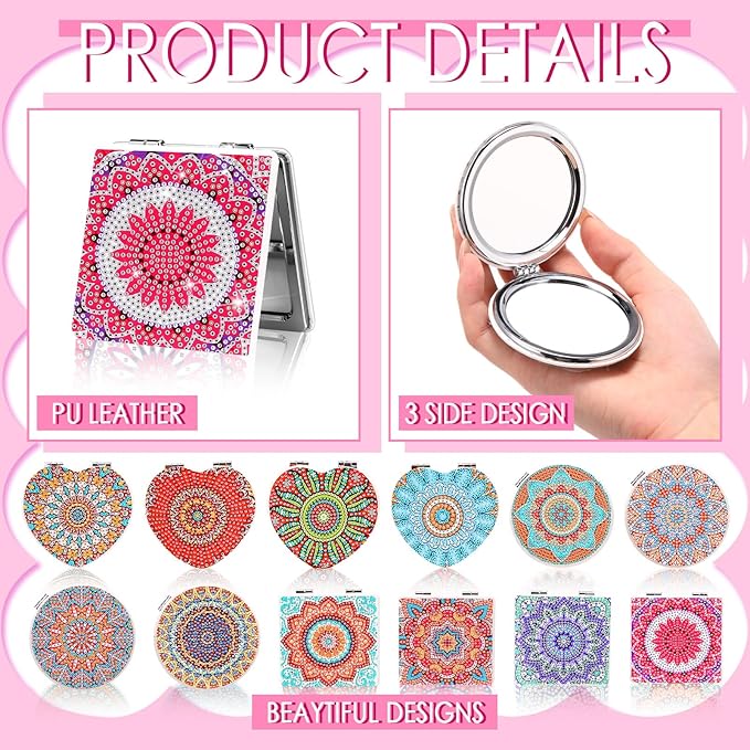 - Package Content: you will receive 12 pieces of diamond painting mirrors in 12 styles, specifically 4 round, 4 square and 4 heart, ensuring you have enough to meet your needs; This quantity allows you to distribute the mirrors across different rooms or even use them as classy gifting items, and they are small, thin, foldable, exquisite mandala design, and convenient storage of wallet in handbag